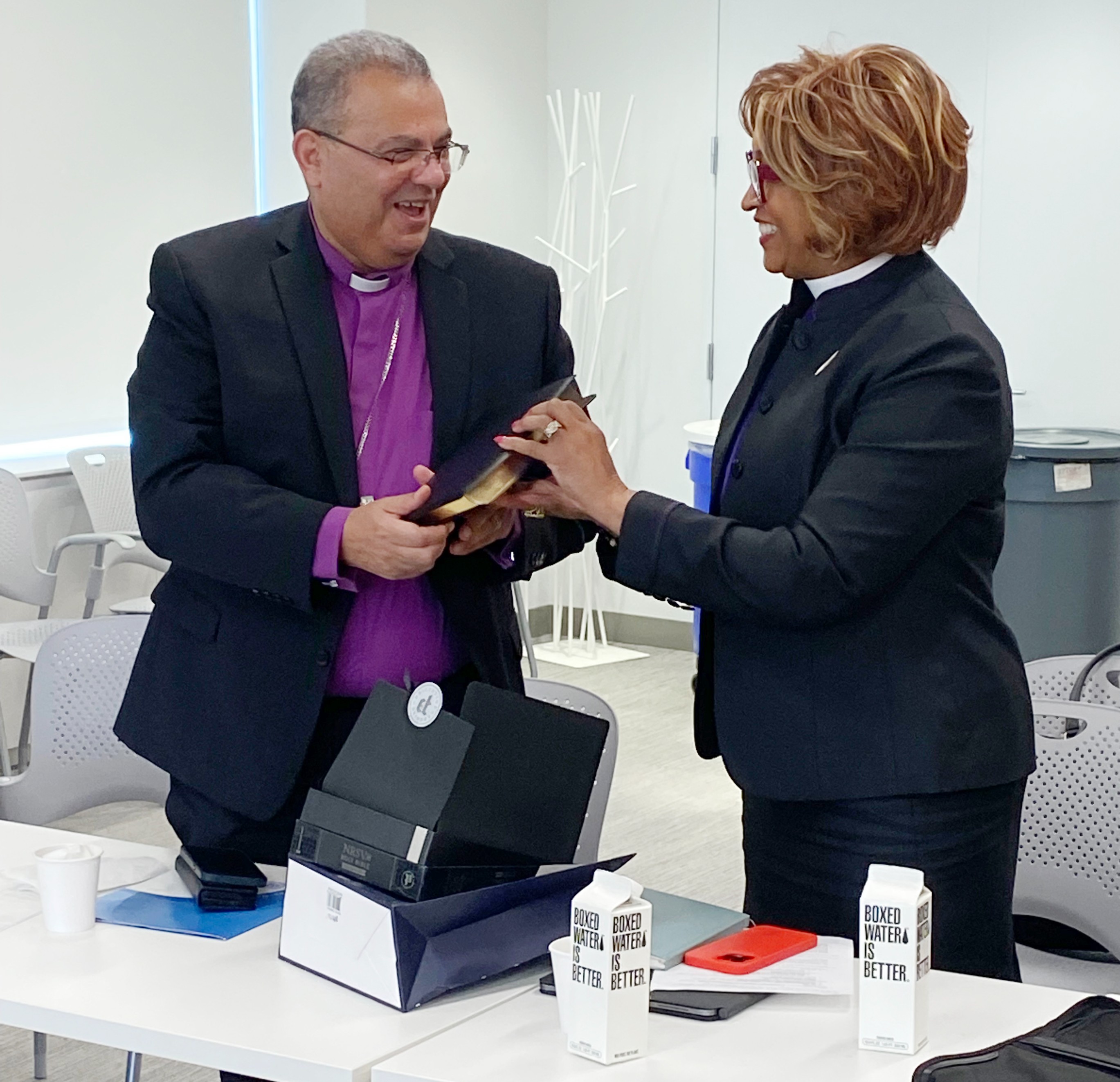 In New York, the delegation met with heads of US churches. The latter included: Bishop Vashti Murphy McKenzie, President and General Secretary of the NCC; Bishop Michael Curry, Presiding Bishop of the Episcopal Church; Bishop Elizabeth Eaton, Presiding Bishop of the Evangelical Lutheran Church in America; Rev. Terri Hord Owens, General Minister and President of the Christian Church (Disciples of Christ); and Rev. Ruth Santana-Grace, Co-Moderator of the General Assembly of the Presbyterian Church USA.