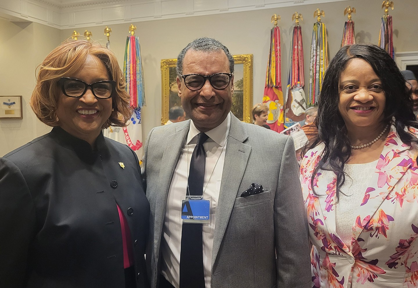 Above: Roundtable participants Rev. Que English, Ph.D., Bishop Vashti McKenzie, Dr. Melissa Rogers, and Rev. Dr. Leslie Copeland Tune. Below: Bishop McKenzie with Stephen K. Benjamin, Director of the Office of Public Engagement for the Biden Administration; Bottom: Bishop McKenzie with Dr. English and Brooklyn megachurch pastor, Dr. A.R. Bernard Photos: NCC | |