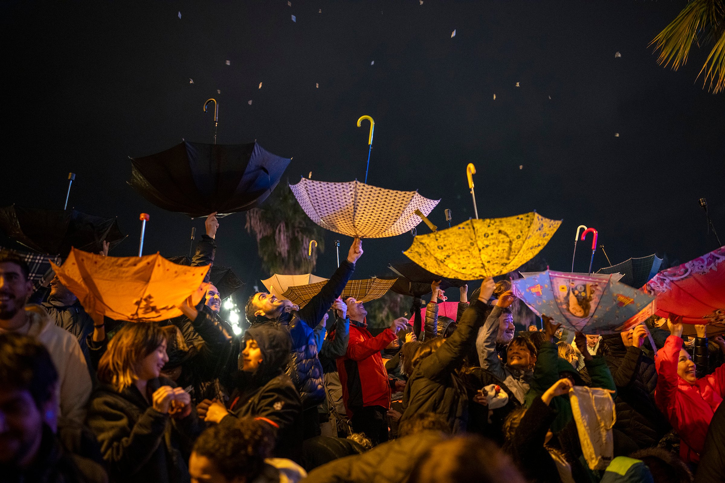 People use their umbrellas to catch candies during the “Cabalgata de Reyes” Epiphany parade in Barcelona, Spain, Friday, Jan. 5, 2024. Christians around the world will mark Epiphany on Jan. 6 with a series of celebrations that go from parades and gift-giving for children to the blessing of water. The holiday is also called the Feast of Epiphany, Three Kings Day and Theophany. (AP Photo/Emilio Morenatti) | |